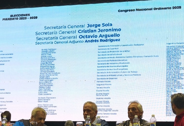 La nueva estructura dirigencial de la CGT fue ratificada por los más de 2.000 delegados congrsales que se hicieron presentes en el estadio de Obras Sanitarias para participar del Congreso Nacional Ordinario, que definió el Consejo Directivo Nacional para el período 2025 – 2029.