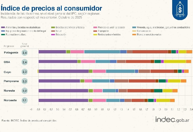 La inflación de octubre fue del 2,3% y acumula un 24,8% en el 2025